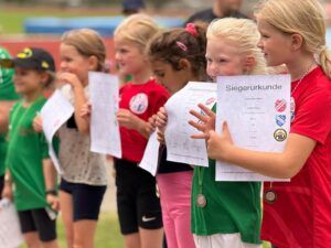 In den Dreikämpfen mit Sprint, Weitsprung und Ballwurf wurden die Vereinsmeister der jeweiligen LG ermittelt. Dabei gab es viele sehenswerte Ergebnisse und viele glückliche Gesichter. Eifrig, motiviert und voller Elan, so liefen, sprangen und warfen schon die 5-jährigen Nachwuchsathleten.