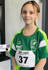 Johanna Goßmann (W11) startete mit einer neuen Bestzeit über 50 m (8,00 Sekunden) gekonnt in den Wettkampf. In einer ihrer Paradedisziplinen hatte die talentierte Athletin der LG Kreis Nord Stade dann allerdings nicht das Glück auf ihrer Seite. Um ganze 2 Zentimeter verpasste sie das Finale im Weitsprung. Platz 9 mit 3,96 m spiegeln das gute Niveau dieser Veranstaltung.